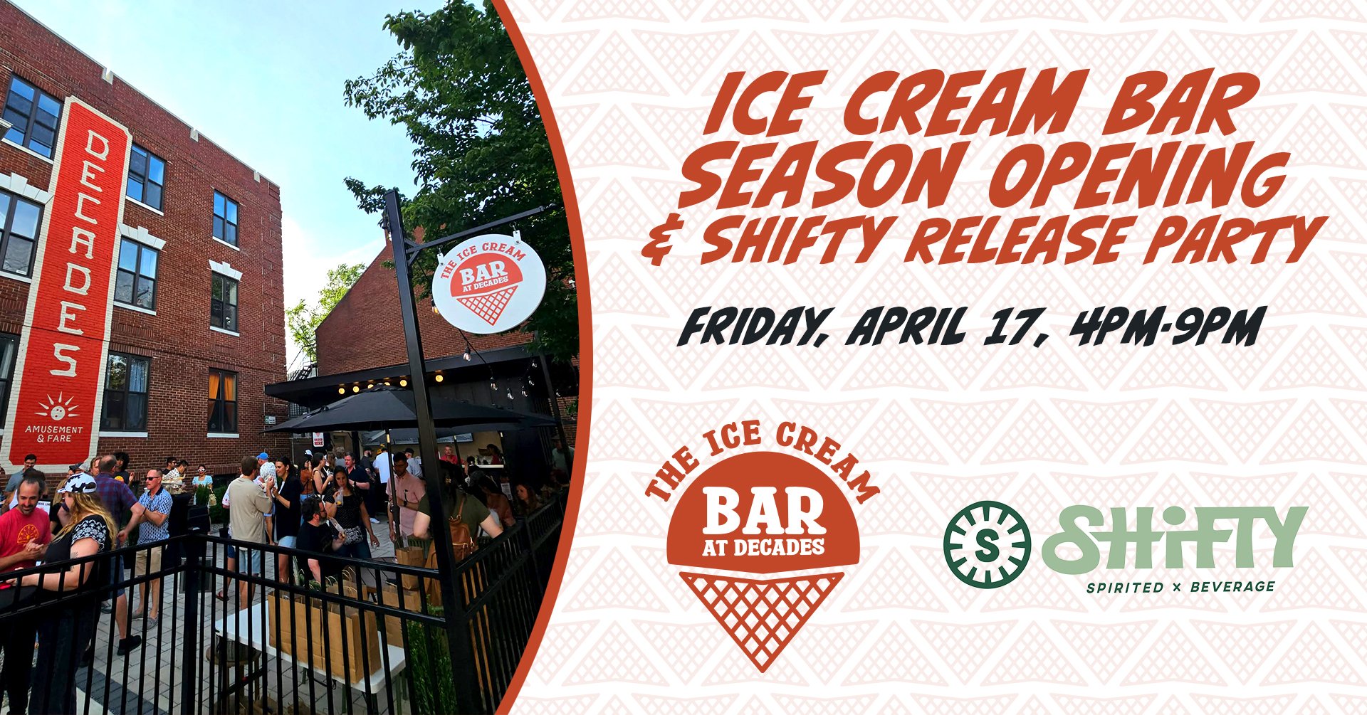 The Ice Cream Bar at Decades opens for season two on Friday, April 17 2026 at 4pm with a special kickoff celebration featuring a NEW flavor of Shifty canned cocktails.